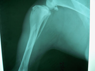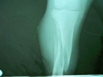 Γιαπωνέζικο mastif 11 μηνών με πρόσφατο λοξό κάταγμα στο άνω / τρίτο της διάφυσης της δεξιάς κνήμης και περόνης.